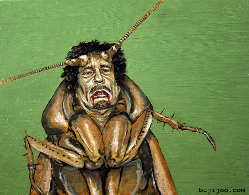 Each of his paintings, he says, expresses Gadhafi’s persecution of the Libyan people.