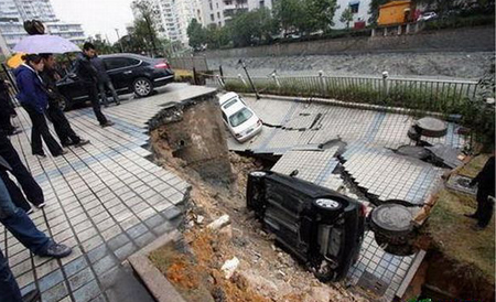 Large cities in China are sinking into the ground, literally, and massive holes are popping up in urban centers like Shanghai, Tianjin, Hebei and Shandong. To put it bluntly the ground is losing its solidity.
