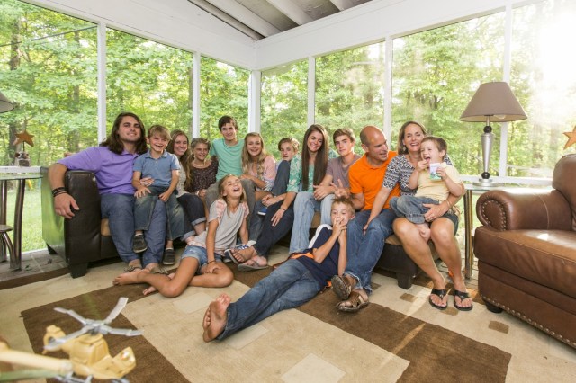 They have 13 children. Which means they require things like a seven-bedroom house and a 15-passenger van. Four children have graduated from college, three are undergrads and six are on the runway.