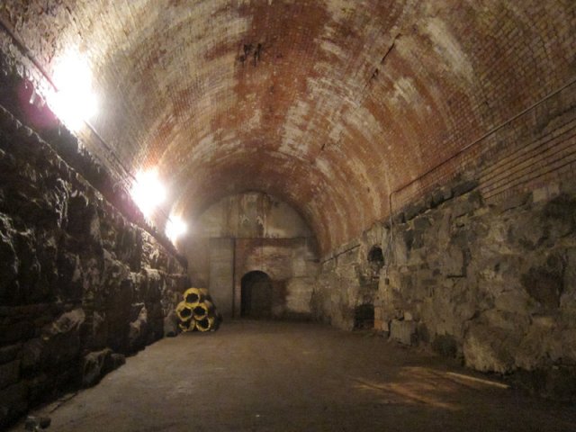 Roebling saw an opportunity to offset some of the bridge’s massive $15 million construction costs. It was an ingeniously perfect fit. The design of the bridge would allow for two wine cellars, one on each shore, along with several other vaulted chambers, to be incorporated into construction. The chambers would be rented out to local businesses, which used them mostly for storage, to help pay off the city’s debt.