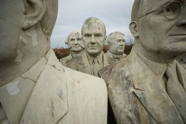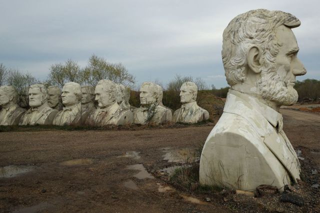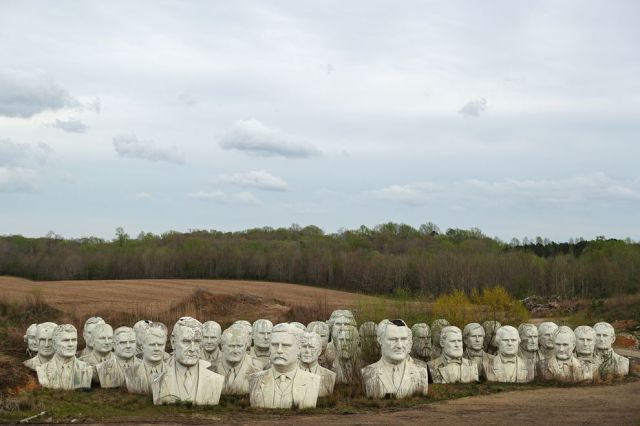 They stand in rows in a Virginia field, kind of a White House version of Easter Island. There are 43 concrete busts of most of the U.S. presidents — from George Washington to George W. Bush. Towering at an average of about 20 feet and weighing as much as 22,000 pounds, this is an elementary school student’s history class nightmare.