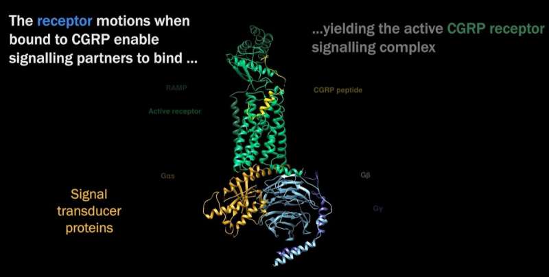 More information: Tracy M. Josephs et al. Structure and dynamics of the CGRP receptor in apo and peptide-bound forms, Science (2021). DOI: 10.1126/science.abf7258