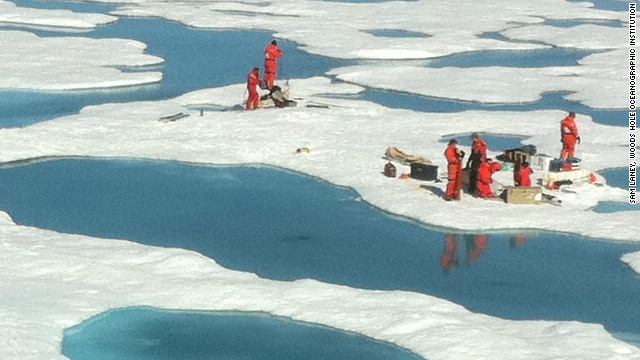 Scientists now believe that pools of melting ice actually function like skylights and magnifying glasses, focusing sunlight into sea water, providing the perfect conditions for the intense phytoplankton bloom, which makes the water look like pea soup.