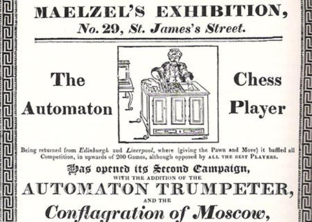 In the 1820s and ’30s, Maelzel took the machine for one last hurrah around the northeast United States, during which Edgar Allan Poe developed a fondness for it and wrote his own treatise on the human-assisted operations he assumed were in place during gameplay (http://www.eapoe.org/works/essays/maelzel.htm). But the thrill of the Turk was fading. By the 1850s, with Maelzel having perished during a Turk tour of Cuba, the machine sat forgotten in the Chinese Museum in Philadelphia. It was there that, in 1854, it succumbed to a fire.