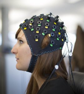 Like fMRI, fNIRS measures brain activity by measuring changes in blood flow through a specific brain region—generally speaking, more blood flow equals more activation. Unlike fMRI, which requires the patient to lie still in a gigantic magnet, fNIRS uses infrared light to measure blood flow. The light source is embedded into a swimming cap-like device that’s tightly worn around the patient’s head.