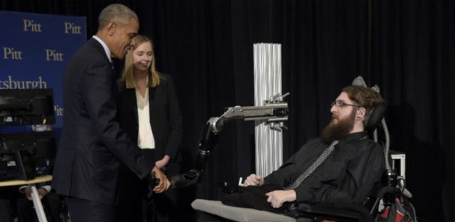The mind-controlled robotic arm of Pennsylvania man Nathan Copeland hasn’t just gotten the sense of touch. It’s also got to shake the hand of the U.S. President himself, Barack Obama.