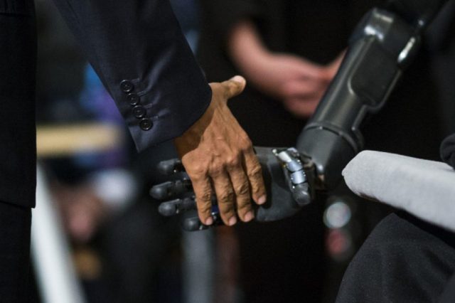 Paralyzed man’s robotic arm gains a sense of touch and shakes Obama’s hand