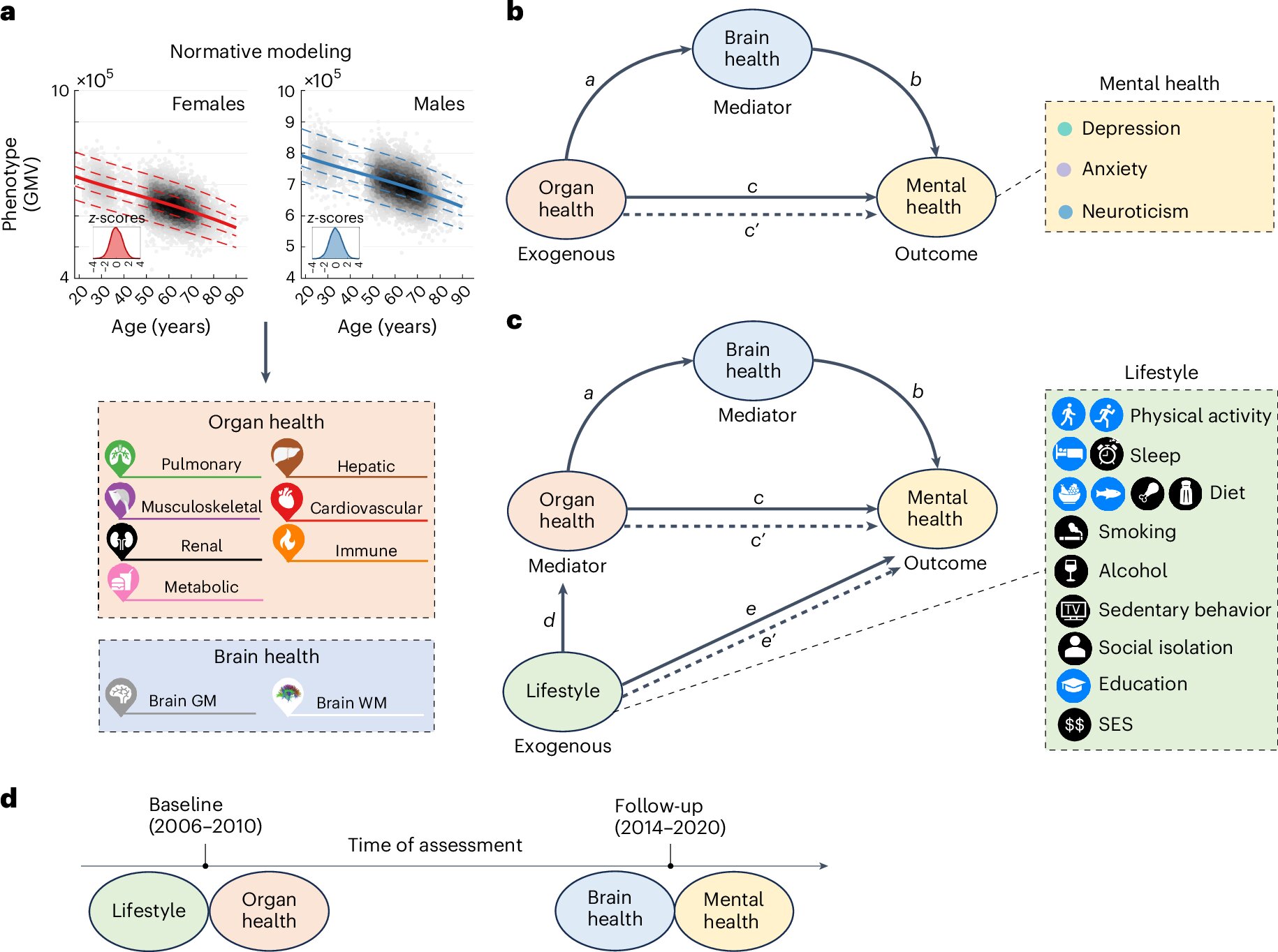 “By integrating clinical data, brain imaging and a wide array of organ-specific biomarkers in a large population-based cohort, we were able to establish for the first time multiple pathways involving the brain as a mediating factor and through which poor physical health of body organ systems may lead to poor mental health.
