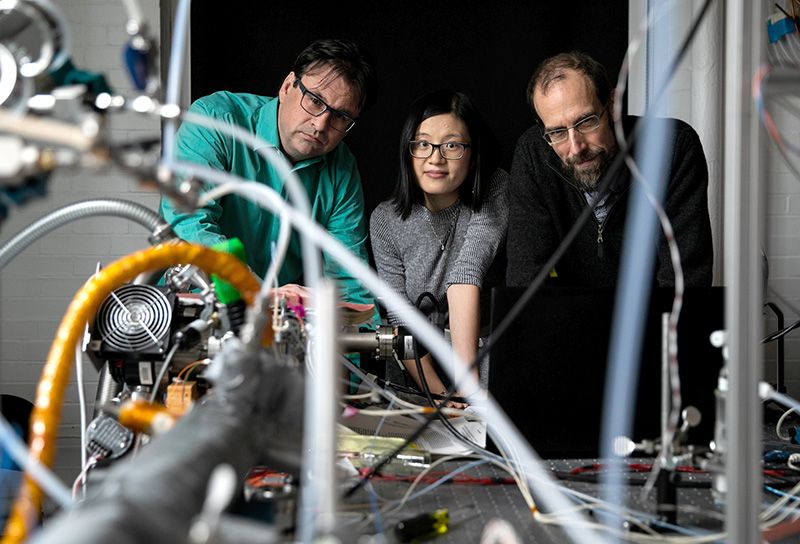 Frank Keutsch, Zhen Dai and David Keith (left to right) in Keutsch’s laboratory at Harvard University.