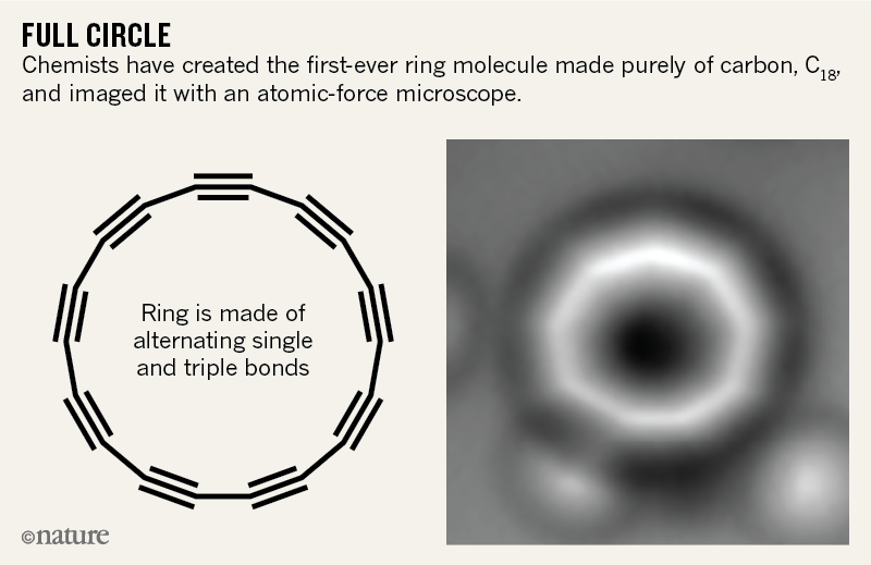It is an “absolutely stunning work” that opens up a new field of investigation, says Yoshito Tobe, a chemist at Osaka University in Japan. “Many scientists, including myself, have tried to capture cyclocarbons and determine their molecular structures, but in vain,” Tobe says. The results appear in Science1 on 15 August.