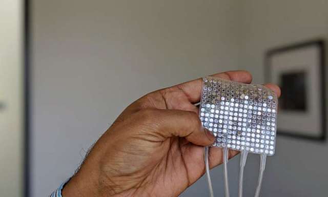 Image of an example array of intracranial electrodes of the type used to record brain activity in the current study. Credit: UCSF
